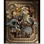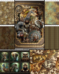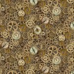 Steampunk Menagerie by Jason Yenter for In The Beginning Fabrics features gears, clocks, pipes, steel, rust, balloons, maps, and tiles in rusty shades of grey, moss, green, taupe, black, metal, charcoal, and gold.