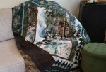Digitally printed quilt and professionally longarmed and bound. The backing is pieced brown and tribal-inspired tan.